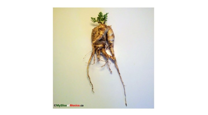 Day temperatures are supposed to be above freezing in my area for the next few days, and the ground is thawing, so this weekend I decided it was time to harvest four parsnips I had left overwintering in the ground.  It was sunny, and the soil was nice and lose.  I noticed there were only three tiny green tops poking out of the soil; probably the rabbits had a nice late-fall snack.  I dug two out, but one had forked and was weird looking.  I think it got too much nurturing from the compost I added to the asparagus plot next to it, and -as my favourite Canadian gardening writer Niki Jabbour would have said- it looked like “… Cousin Itt from the Addams Family: very hairy and not appetizing!” [1].  The second one was nice and “Lurch” (LOL).  I left the third one in the ground to see if it will bloom, and hopefully will give me fresh seed for my next crop.