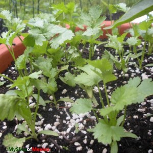For cilantro, I know that it is always available at the supermarket, but sowing the seed directly outdoors is very easy, and it provides a nice supply of “on demand” cilantro leaves for a few months; the big bonus is getting coriander seed later in the season, for cooking and to save for next year’s crop, and although not specifically for Mexican dishes, the blooms, green seed and roots are also edible, what a bargain! As soon as the soil is workable (not frozen), prepare the area by loosening the ground with a rake and removing any rocks; I like to water the soil at this point, so that I won’t disturb or bury the seeds too much by watering on top. Once the soil is loose and moist, I sprinkle the coriander seed (cilantro), and finish with a thin layer of soil. This method is also good for large containers, and to apply to any other small seed that can be just scattered, such as spinach, lettuce and parsley.
