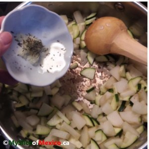 04 picadillo add garlic with thyme and water