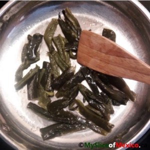 saute roasted poblano strips My Slice of Mexico