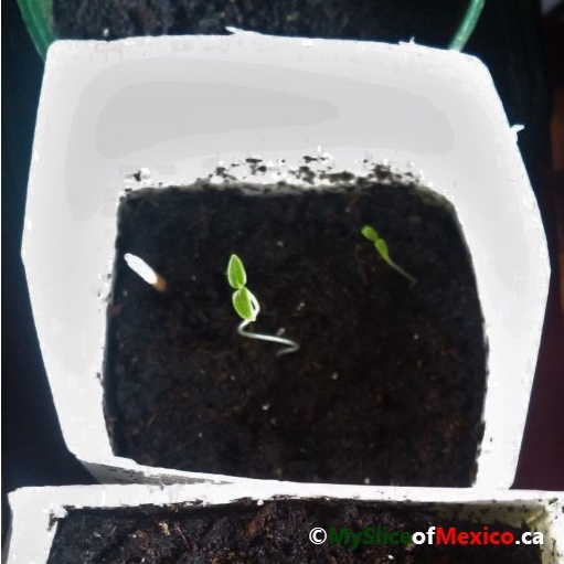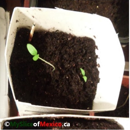 The Canadian farm population totalled 650,395 in 2011, representing about 1 out of every 50 Canadians, or 2.0% of the total population of Canada [1]. In Mexico, more than 30 million people, almost 25% of its total population, live in rural areas, and depend primarily on agriculture both for jobs and for personal sustenance [2]. In the urban landscape, though, the picture reverses. In 2013, 57% of Canadian households reported growing some sort of edible (vegetables, fruits or herbs) in their backyards, balconies or even indoors [3]. The amount of urban gardening in Mexico is not well documented; I could not even find figures to report nationwide, but I was pleasantly surprised when I learned that in the last decade, several projects had been developed to encourage Mexico City residents to start rooftop veggie gardens, community plots, and school greening projects [4]. In 2007, for example, Mexico City’s government started a grant program to help families build gardens on rooftops, and by 2012, 3,080 households had joined [5]. I grew up in an apartment in Mexico City, and my only experiences with growing vegetables were the standard sprouting of a couple of beans in elementary school, and a tomato seedling to study the tobacco virus in high school; needless to say, those were not edible at all. Some of my friends had gardens or a patio with maybe one fruit tree or two, but I personally only knew one family actively pursuing a vegetable garden in the city back then – my grandparents grew daikon (Japanese radishes), lettuce and herbs. Here in my Southwestern Ontario home, I am into my sixth year as a backyard veggie gardener; I just sowed my own daikon seeds and transplanted the lettuce seedlings from under my grow light, amongst other things (see update below). I know there is always more I can do to be environmentally friendly, but today, I am proud to report that I have been successfully transformed from apartment mad botanist to urban veggie grower, not unlike those 3000 plus rooftop gardeners in Mexico City; and also, my family is part of the massive 57% of Canadian households growing edibles.