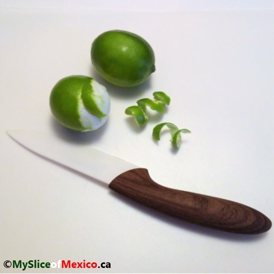 Either ingredient list makes two Margaritas. Chill 2 cocktail glasses in the freezer for a couple of hours before serving. Meanwhile, peel one lime with a very sharp paring knife, starting at one end and going around towards the centre, to form spirals: