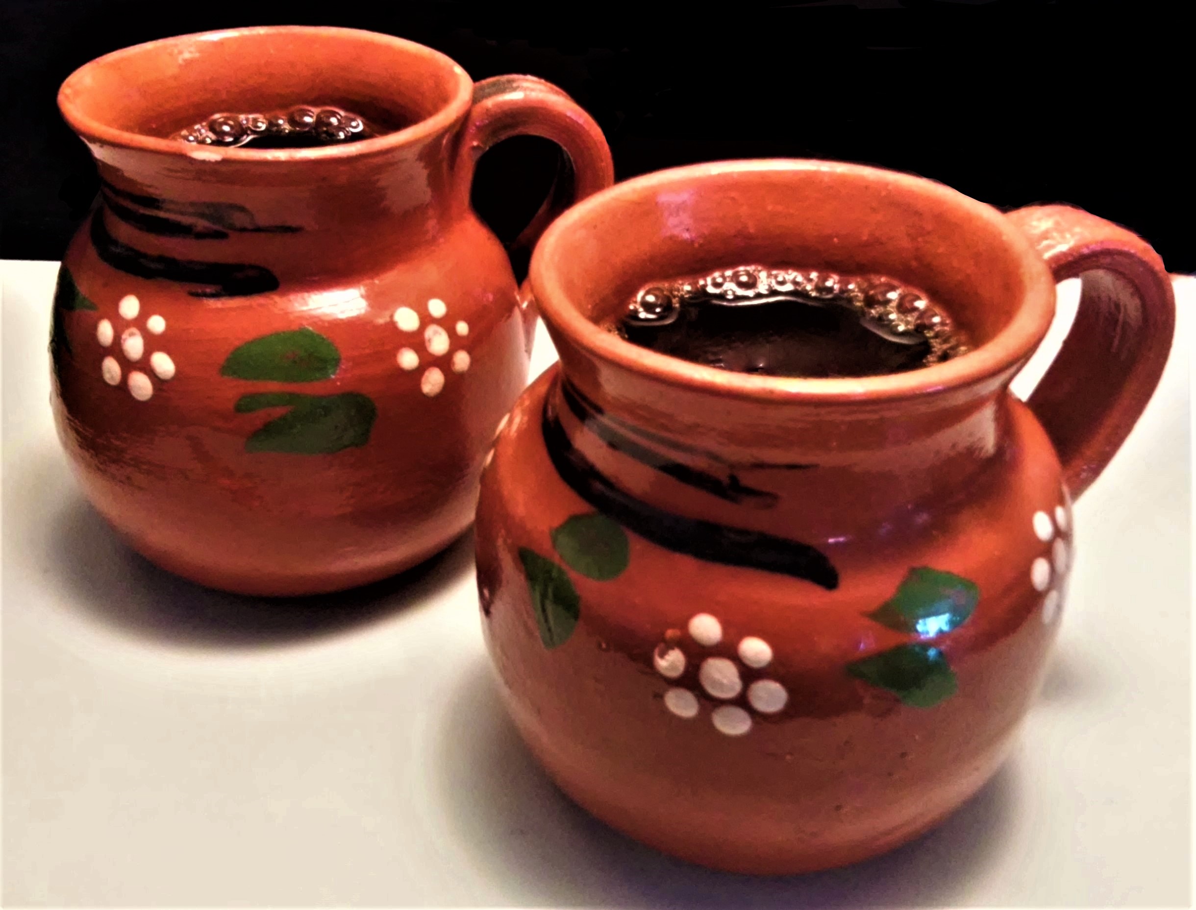 A traditional Mexican beverage, café de olla (coffee from the pot) was first humbly served in clay mugs (jarritos) at events (such as funerals) and carnivals (before Lent, Day of the Dead, etc.), but has gradually become a well known delight, even in posh locations all over the world … Click on image for more