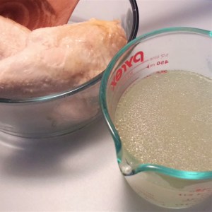 reserved cooked chicken and broth