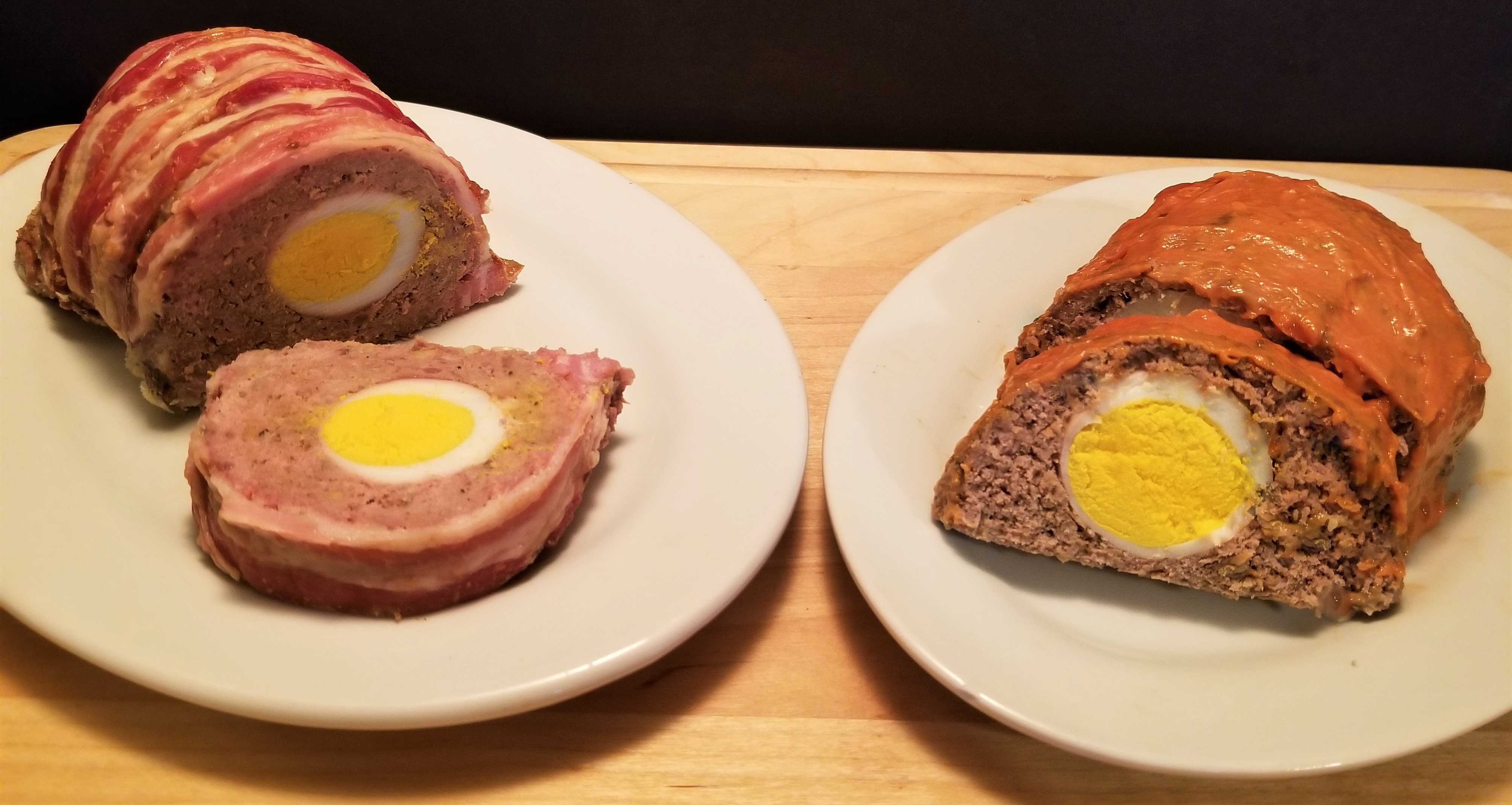 These two versions for meatloaf feature the more traditional recipe, which includes bread, milk, and bacon, and a “light” version without those ingredients … click on image for more