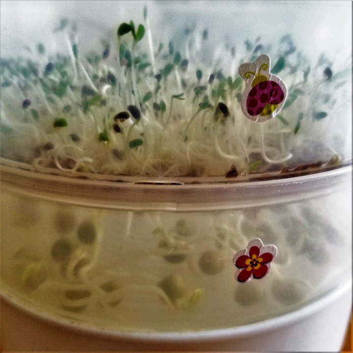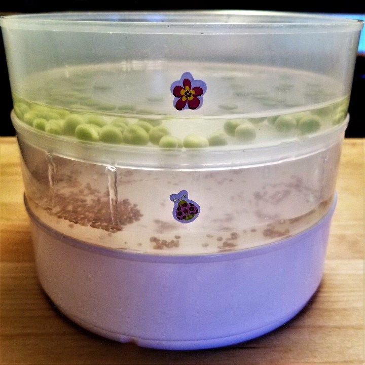 As we have entered the second half of the winter season (in the Northern hemisphere), lengthening daytimes are becoming more noticeable; vegetable gardeners are organizing their seeds, planning their plots, and experiencing a flaring need to grow (and eat!) something fresh. Many people keep potted edibles indoors, cultivate baby greens and herbs using grow lights or, as I have been doing for the last couple of years, grow seed sprouts. I know it is possible to cultivate sprouts in a jar, and I remember my mom sprouting soy beans indoors using a tray and a kitchen towel as substrate, but since proper humidity levels are critical to be successful and avoid mold, I would not trust myself with DIY systems, so I decided to invest in a stackable sprouter: