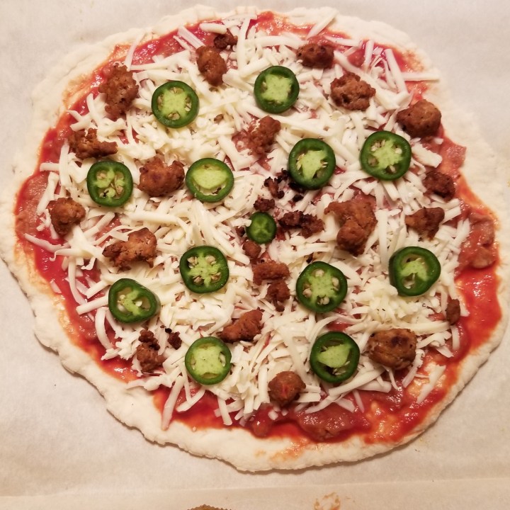 All these Mexican toppings go so well on pizza! I wonder if it is because of the original Mexican contribution to pizza, the sine qua non tomato. On the other hand, Worcestershire sauce is good too, and that, I cannot explain.