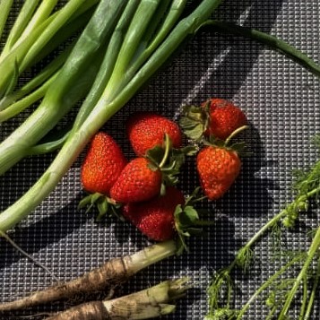 This is the third and last recipe using my backyard harvest of last week; after a healthy veggie omelette and a refreshing and colourful beverage, I had a few strawberries left (photo below, left). I thought a dessert to nourish my inner child was in order, since summer will officially start this Friday June 21 (in the Northern hemisphere) and the weather is finally turning warm. I had to gather more strawberries for a couple of days to collect enough for a batch of ice cream since, as I had explained, the local wild fauna has been eating most of them; however, the strawberries are becoming brighter and more flavourful as the season progresses (photo below, right):