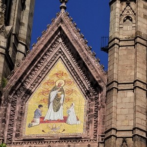 The cornerstone was laid on August 15, 1897 during the dictatorship of Porfirio Díaz and in 1910, construction was interrupted due to the Mexican Revolutionary War. It was not until 1924 that priest José Garibi Rivera took charge; the project received immediate support and donations from the general population, taking another 48 years for it final completion. The façade is embellished with Italian mosaics created in the Vatican’s Mosaic Factory: