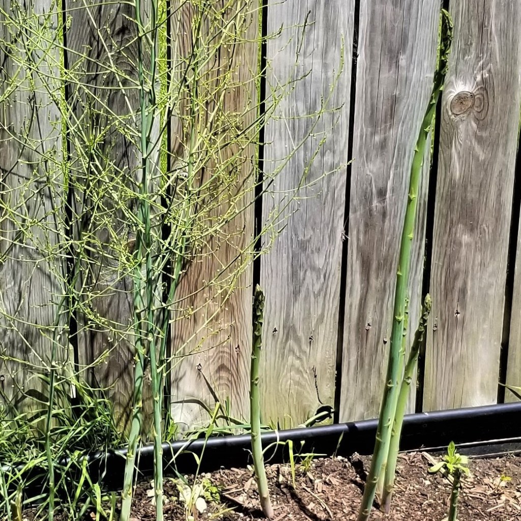 Asparagus is one of my earliest crops; after harvesting the spears for several weeks, the plants must be allowed to grow, so they may store energy for next year’s crop.  The spears quickly grow and develop into fronds: