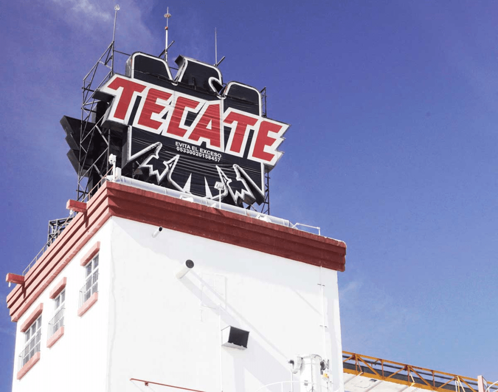 So, there is a mountain, as well as a river, an American hamlet and a Mexican city and municipality, all called Tecate, but, how about the beer? Tecate™ is also the name of a beer currently produced in several plants in Mexico and marketed internationally, but its story begins in the city of Tecate. A brick building built in 1929 had been used to produce vegetable oil, and in 1943, a man named Alberto Aldrete took over the business, also starting a small malt brewing operation on the side; he named his artisanal beer after the town, establishing its new enterprise as Cervecería Tecate™ in 1944. The brewery brought prosperity to the town, and by 1947, started exporting to Asian and American markets. In 1954, the company was bought by Cuauhtémoc Moctezuma™ Brewery, expanding its market and introducing the “easy open” cans to Mexico in 1964. The boost from the new management and convenient presentation gave the beer a great new market, and their logo became ubiquitous at beer depots, on table tops and the backs of folding chairs at road-side restaurants, and even supermarkets all around Mexico. Although at this point the plant in Tecate was also producing other beers as part of the larger brewery, the logo continued to be its iconic symbol: