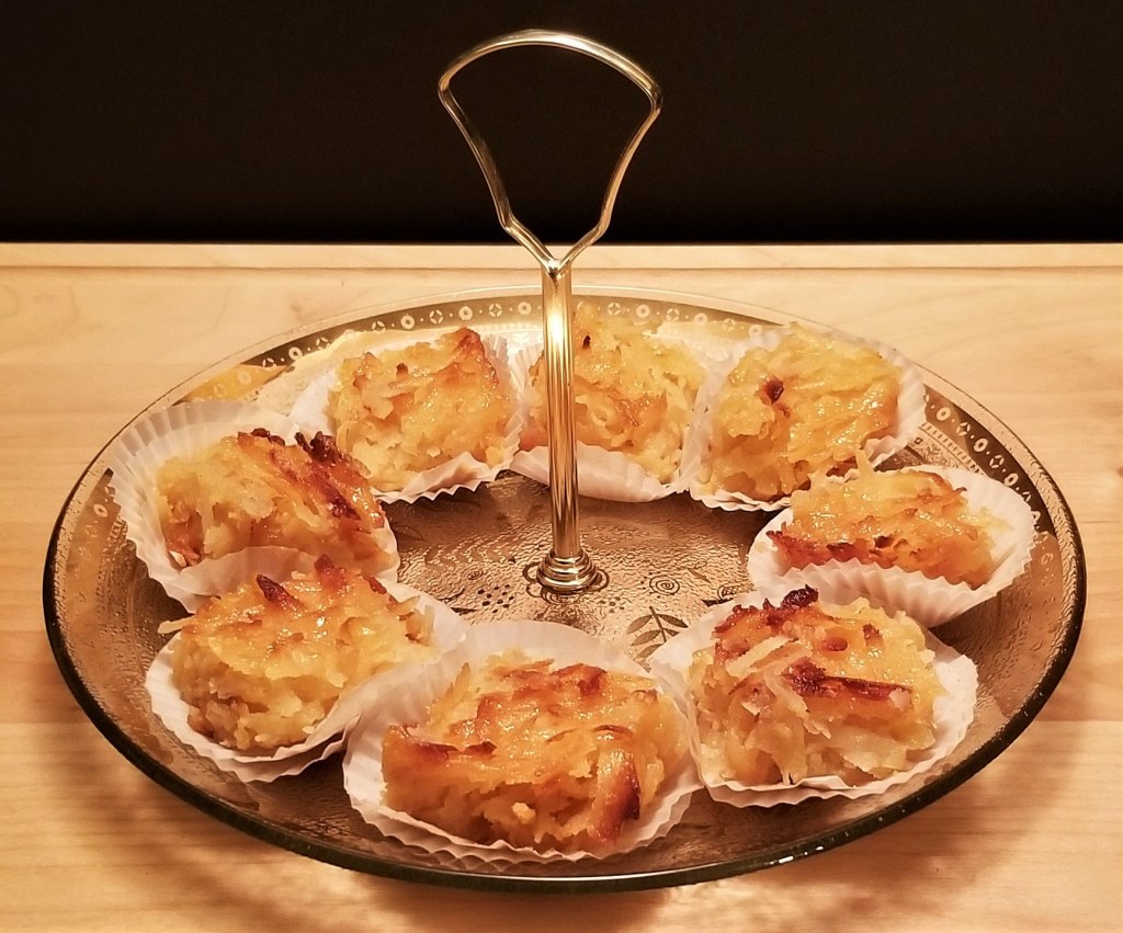 My husband does not usually like to eat coconut, but these custardy treats were a big hit (note that one square is already missing from the tray in the photo above, LOL).