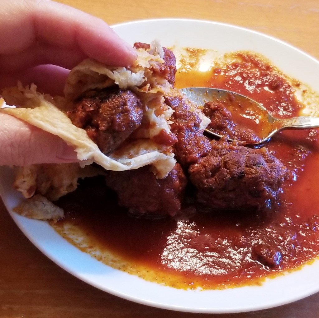 In a previous post, I talked about how food was influenced during these violent revolutionary times; any dish that could be prepared and served from one pot (de la olla), or easily transported, became an asset when improvised cooking had to make use of whatever was available, and could get interrupted by hailing fire without notice. Tacos acorazados hit the bill; the story goes that around 1908, a lady by the name of Felicita Sánchez, started selling hard boiled eggs and rice out of a basket at the train station in Cuautla, a town in the Mexican state of Morelos. To make the dish portable, she assembled a layer of rice on top of two corn tortillas, then nested the eggs in the rice, and topped with salsa. Her method became popular, and especially handy when the Revolution War started shortly after; not only eggs, but any other kind of food, even saucy dishes, could be neatly placed on rice, all wrapped with a double layer of tortillas. Many others copied the technique with a variety of fillings, generically called guisados, which are any kind of stew or savoury preparation. Because of this reinforced structure, they were called “acorazados” which means “armoured”, with a popular belief that it was specifically because of the steel-plating armoured battleships, called acorazados in Spanish, which became decisive for naval victories at the turn of the 20th Century, and to some extent during WWI. Later on, even Felicita’s son started his own business in Cuernavaca, capital city of Morelos, and continued to popularize the “armoured” tacos.
