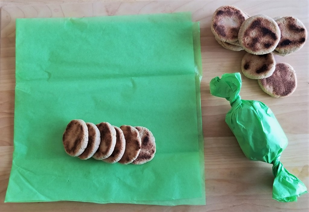 The wrapping is optional, but it will keep the patties fresh for a longer time, and is also a convenient packing and lovely presentation if sharing with friends. Bundle batches of six to eight patties in double layers of tissue paper (about 10-inch squares); wrap patties into a cylinder and twist paper ends to keep closed: