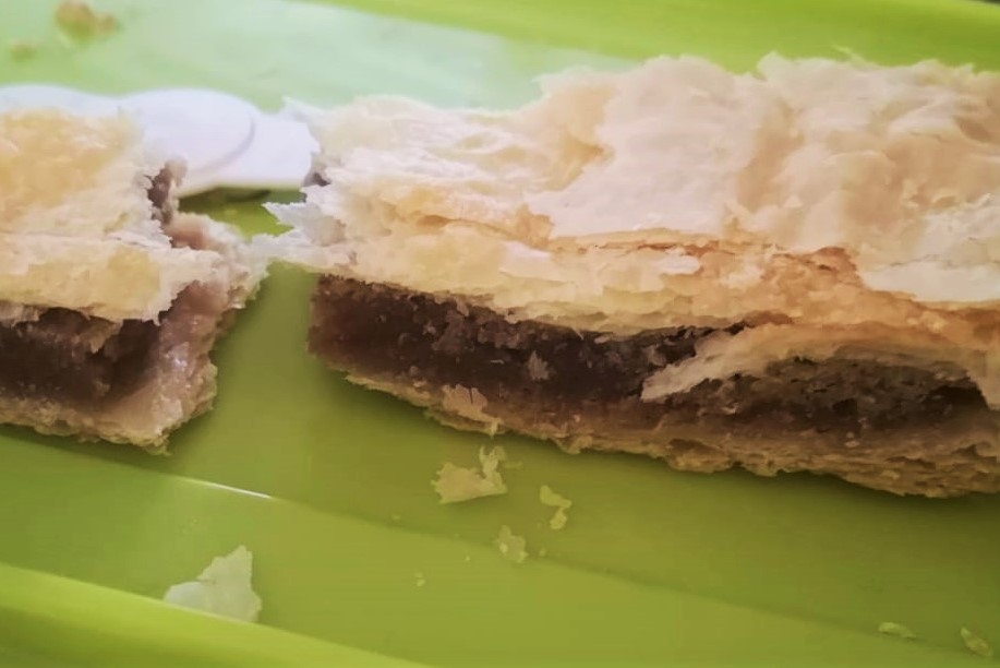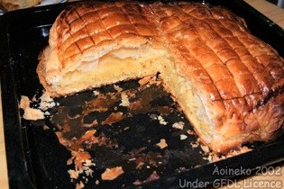 For Christians around the world, the Feast of the Epiphany is observed on January 6th, commemorating the revelation of Jesus to the Wise Men from the East, also known as the Magi, or “Los Reyes Magos” in Spanish. In France and other European countries, the tradition of preparing a special sweet treat for this season may be traced probably to the times of the Roman Empire, first as a tribute to Saturn to celebrate the lengthening of daytime hours, and later re-interpreted as a celebration of the Epiphany of the Magi. The first cakes were sweetened with honey and adorned with figs and dates; a dry broad bean was hidden inside, and the person to find it in their portion would become the king of the celebration. In the Middle Ages, French cakes remained similar in texture and tradition, called King cakes, but in the context of their Christian religion, forming the cake into a ring to represent God’s eternal love, the fruit on top as the distractions of the mundane, and the hidden bean as a symbol of Jesus’ family trying to hide him from persecution, as related in the Bible’s New Testament. Epiphany is still celebrated with La galette des rois, a puff pastry round with an almond filling (photo below, left), which sometimes comes with its own paper crown to be worn by the person who finds the bean . One of my daughters is currently working in France, and last weekend, she made a nudiustertian hazelnut version with her boyfriend (photo below, right):