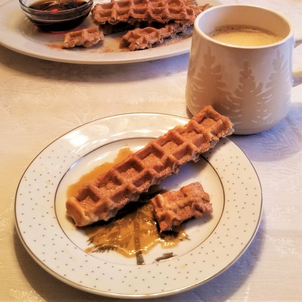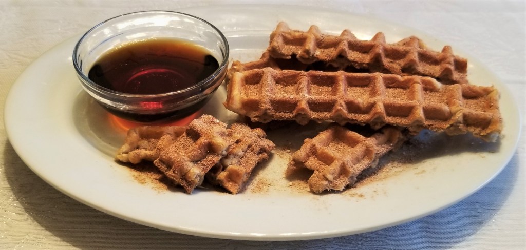 The grid from the waffle iron creates perfect pockets for the sugar and cinnamon to stick, and the dipping sauce or hot chocolate to pool.