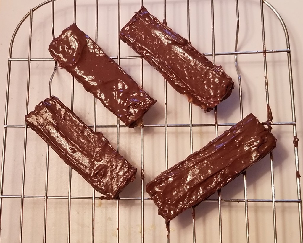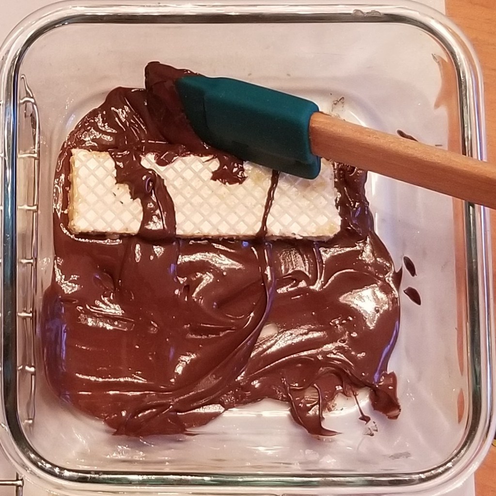 Transfer to a rack, and repeat with the rest of the sandwiches. Once they are all covered, allow to rest on the rack, until the chocolate sets: