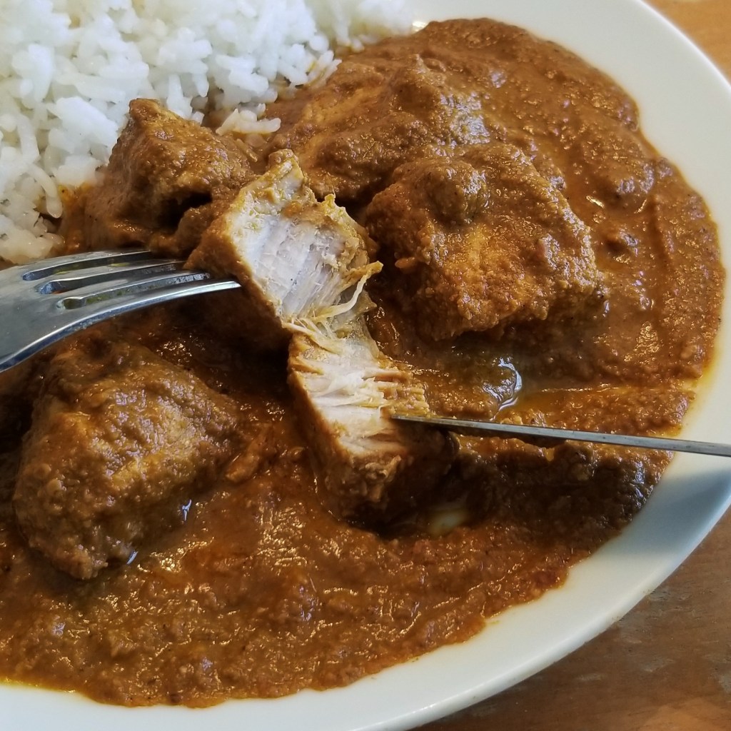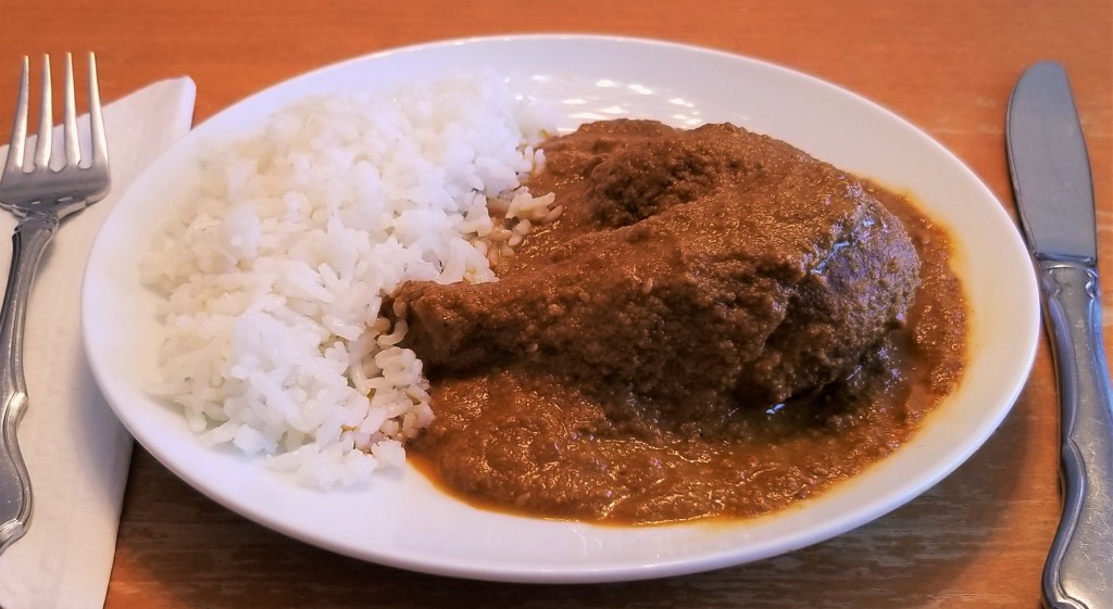 A non-vegetarian plate may have meat and sauce only, with the side of rice: