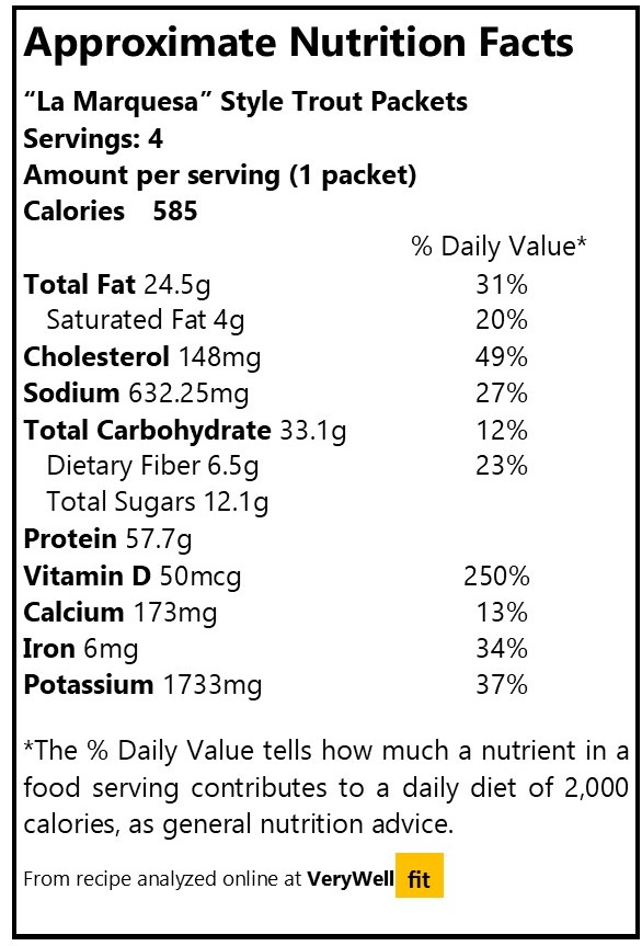 Printable recipe: “La Marquesa” Style Trout Packets
