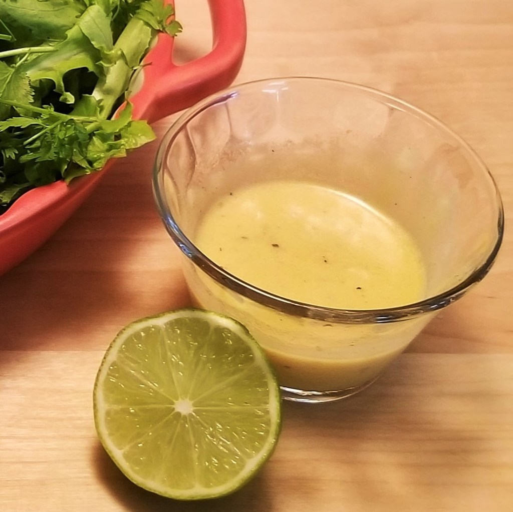 In a small bowl, mix Dijon mustard, lime juice and salt, then slowly pour oil in, while continuously mixing. Finish with a couple turns of the black pepper grinder: