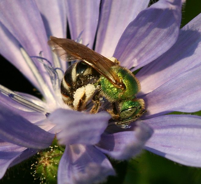 FUN FACT: The city of Toronto, in Ontario, Canada, has chosen the Bicoloured Agapostemon (Agapostemon virescens), a metallic green sweat bee, as “Toronto’s Official Bee”. In the city’s website, it is explained as “… an ideal choice as Toronto’s Official Bee for several reasons: