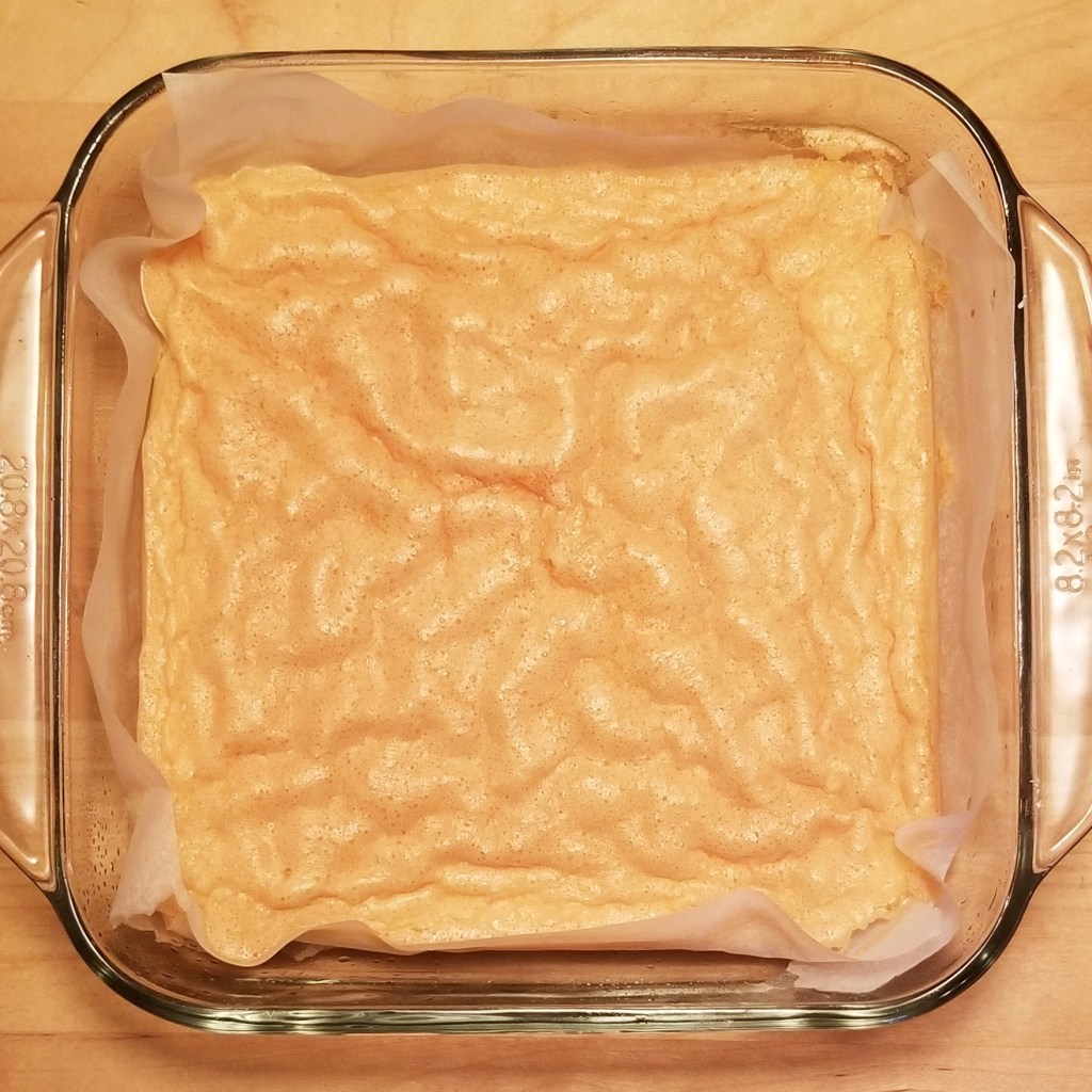 Use parchment paper to line two 8x8inch baking pans (or one 9x13inch pan works, as well); grease with a bit of butter and reserve. Turn on oven to 350ºF (180ºC).