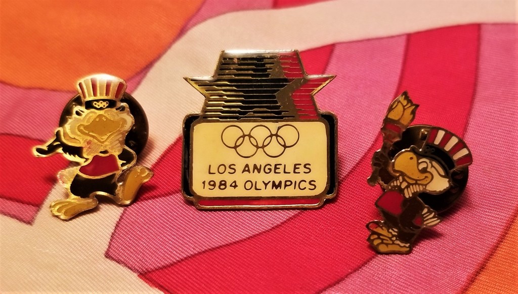 In retaliation, fourteen communist countries (including the now gone Soviet Union and East Germany) rained on the USA’s parade four year later, boycotting the Los Angeles 1984 games, along with Iran and Libya (for other political reasons). I remember the competitions being somewhat boring at times, with two of the most powerful medal contenders absent. My sister was again working in Northern Mexico near the American border around that time, and brought me the pins shown below, some featuring Sam, the Olympic Eagle: