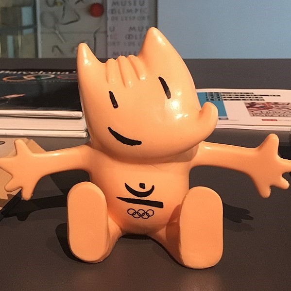 FUN FACT – Back in 1992, a friend who had been to Spain gave me a pin of a rainbow-coloured bird (photo below, left), saying that it was the mascot of the Barcelona 1992 Olympic Games. While putting together this post (29 years later!) I found out that the actual mascot for those games was not a bird, but a cubist canine named Cobi (photo below, right):