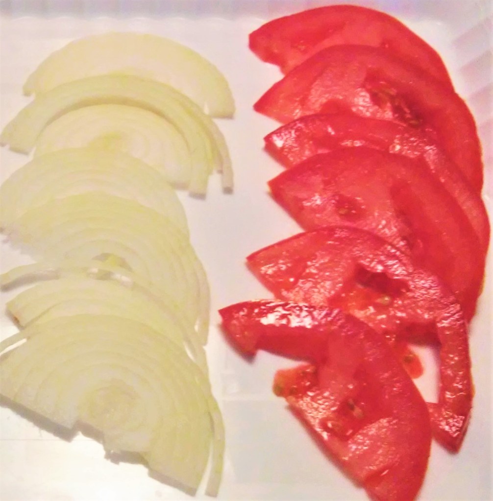 1 tomato; washed, stem end removed, and sliced