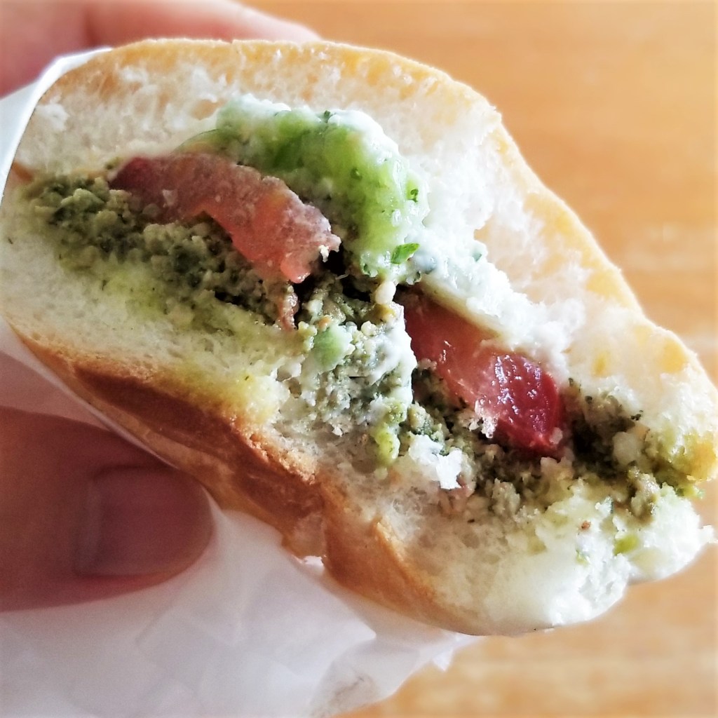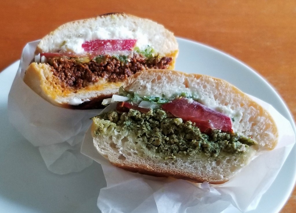 These tortas had an amazingly satisfying bite, from the crunchy outside and fluffy crumb of the bun, soaked with flavours of spicy chorizo and its salty juices, to the freshness from the veggies and salsa, and the richness of the cream and cheese. It was hard to pick between the red or green chorizo flavours, so it was a good compromise to eat half a sandwich of each flavour: