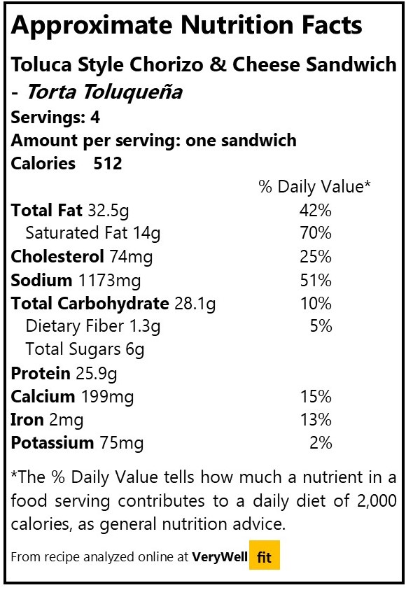 Printable recipe: Toluca Style Chorizo and Cheese Sandwich