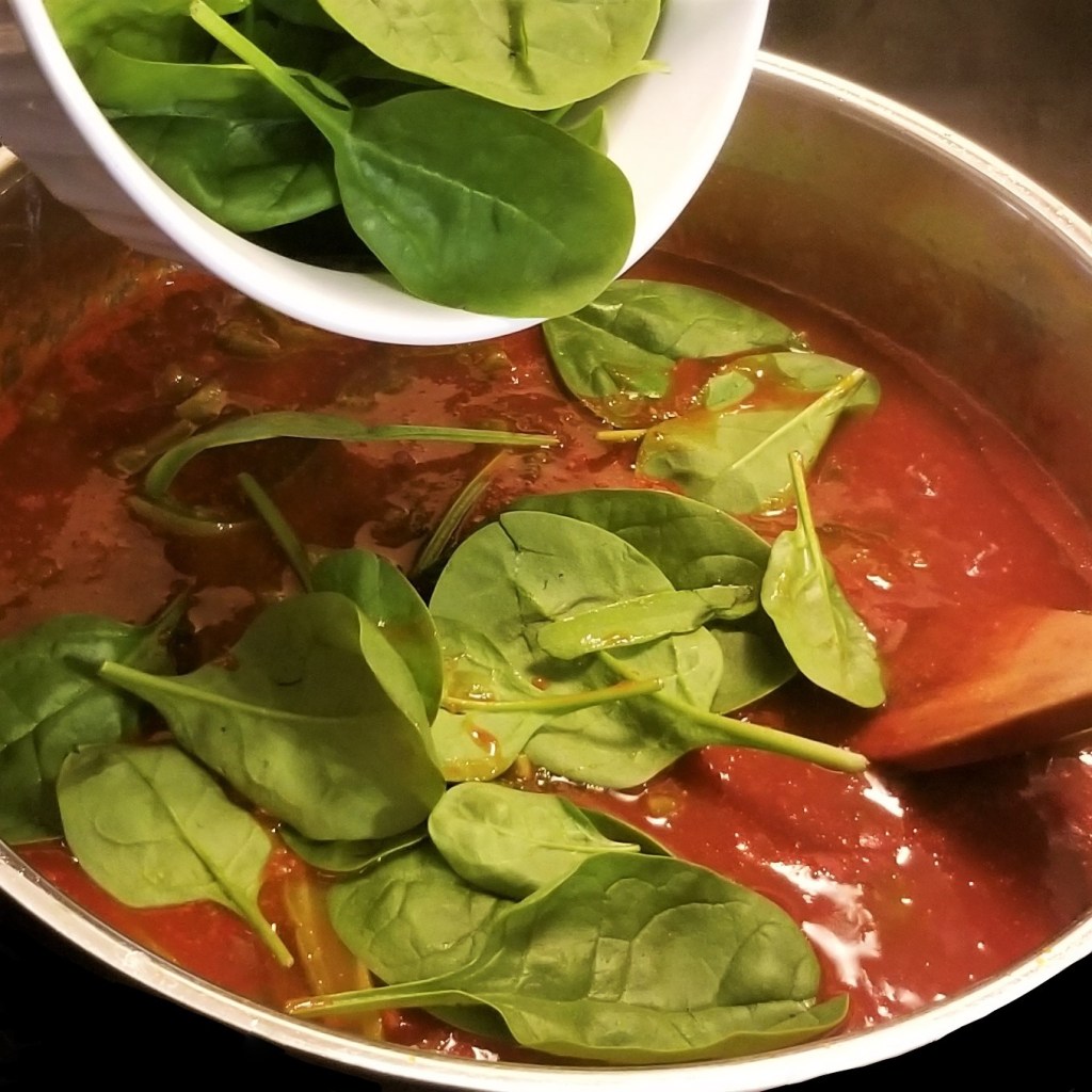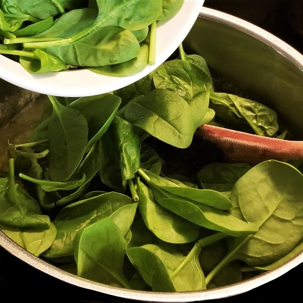 Quintoniles are one of many species of the common weed known as pigweed; all pigweed plants are edible, but are not available this time of year in my region to be foraged, so I used baby spinach (other people use Swiss chard.)
