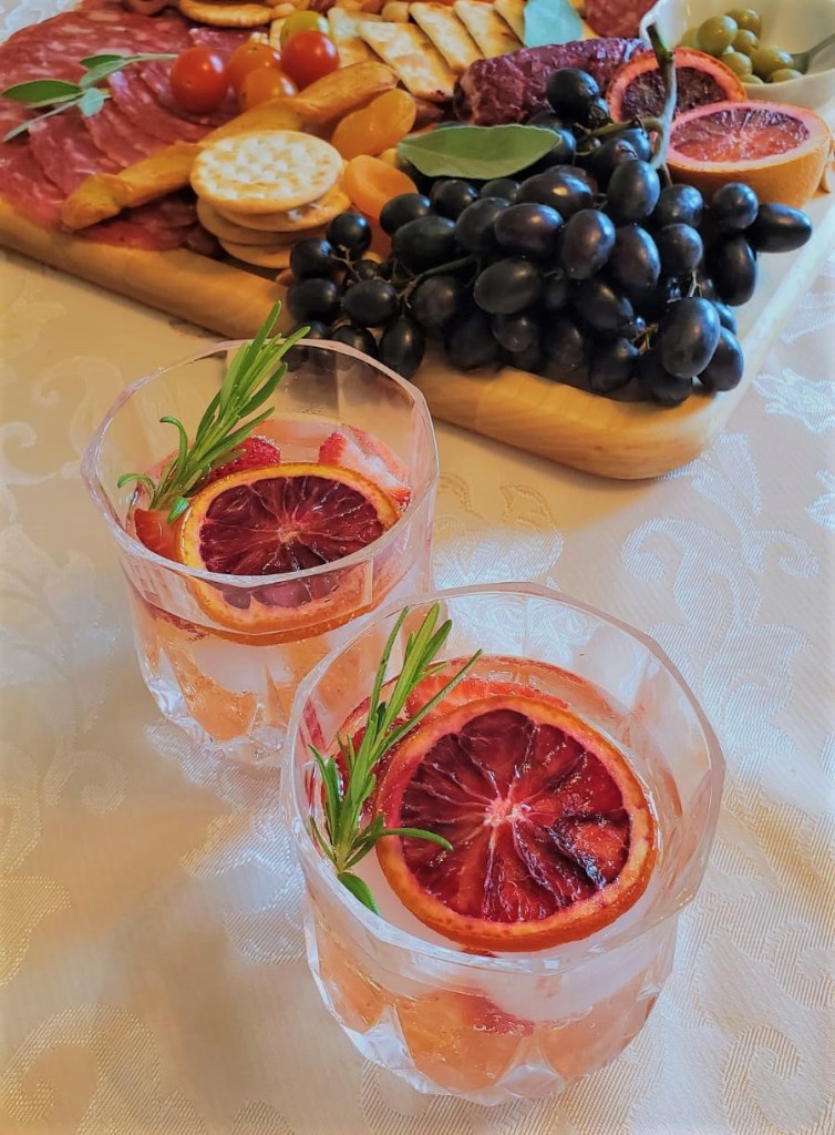 One of my daughters assembled a stunning charcuterie board for a family celebration last summer; there was a selection of soft and semi hard cheeses; prosciutto and smoked salmon roses, and other cured meats; olives, fresh and dried fruits, and nuts; crackers and bread; and finished with sage leaves and semi-dehydrated blood orange slices (like the ones shown at the top of this post):