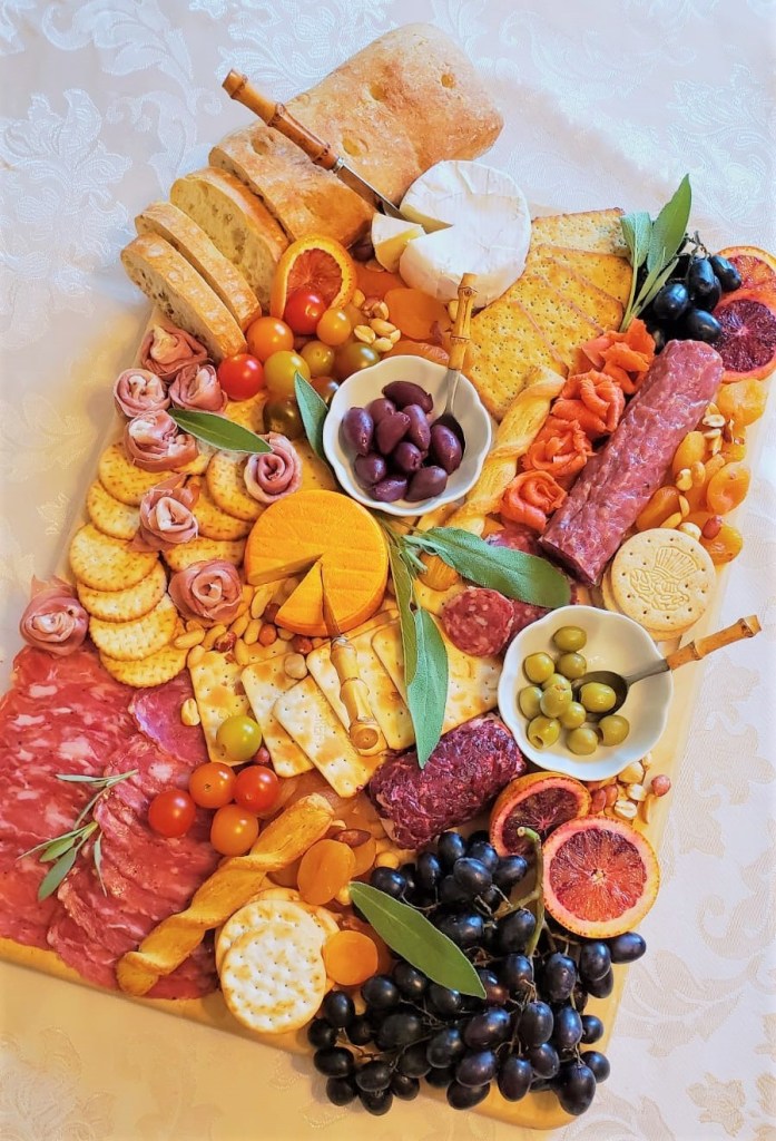 The charcuterie board is beautiful! Our local newspaper had an article about a woman in town who grew bored with Covid so started designing charcuterie boards. She sells them for crazy prices!