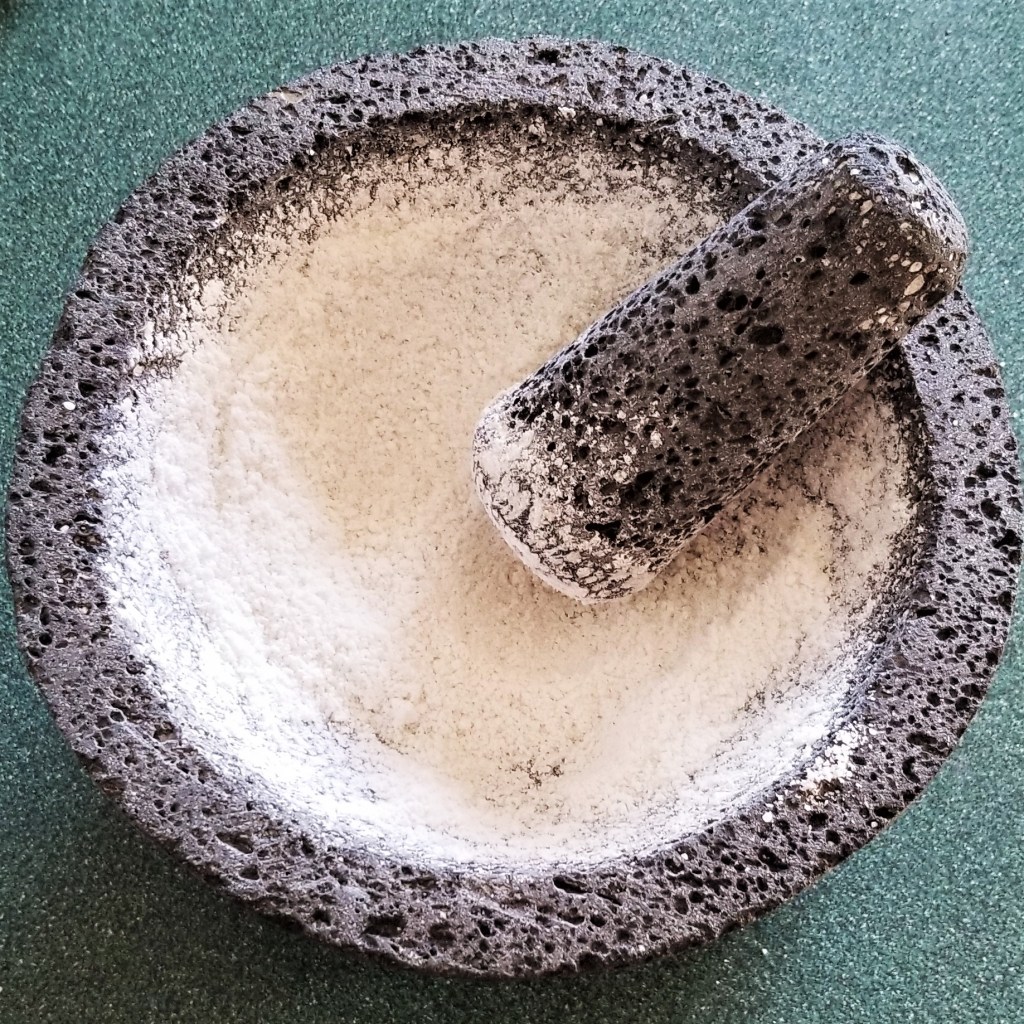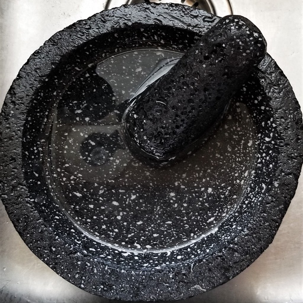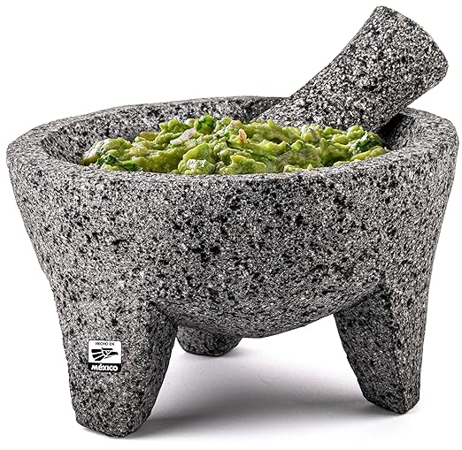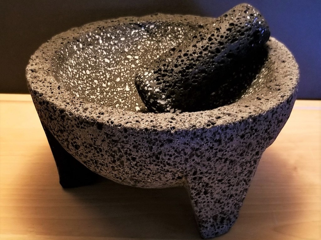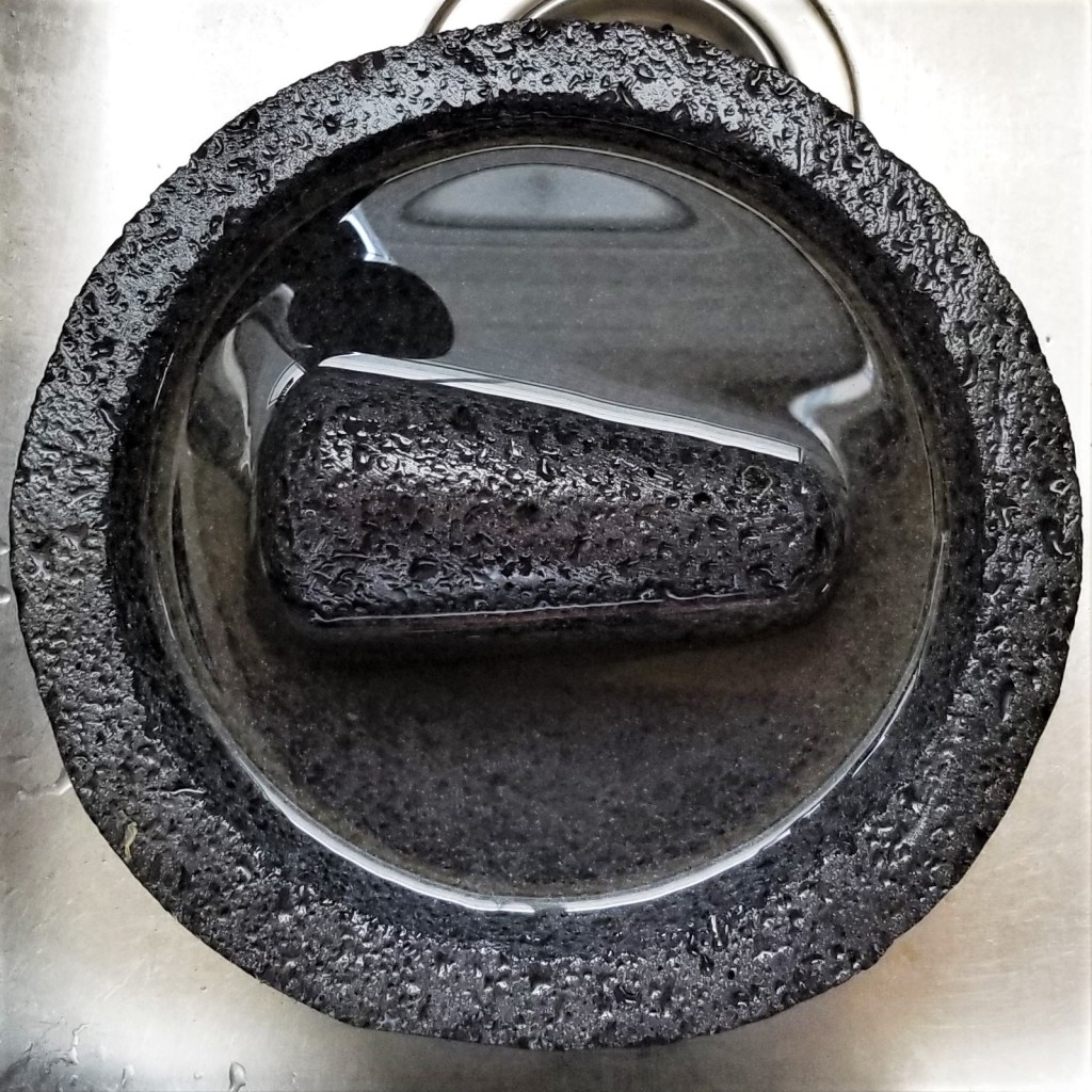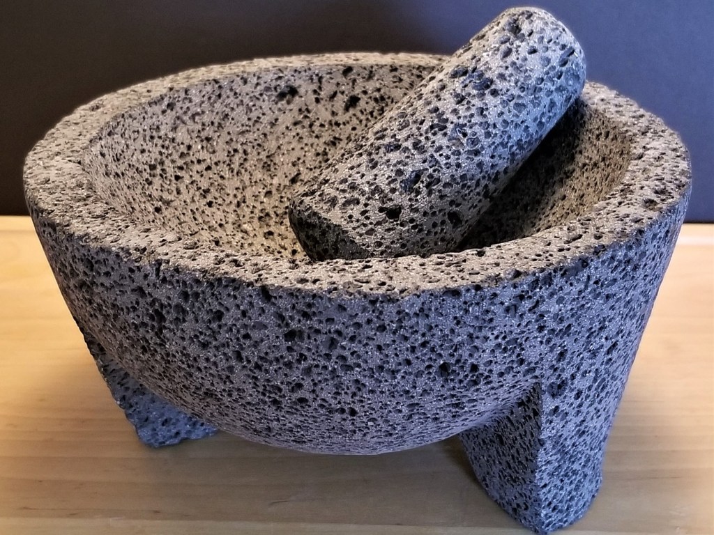 Once at home, a brand new molcajete must be providently cured, to partially polish the surfaces that will be in contact with food, as well as to remove any loose rock particles.