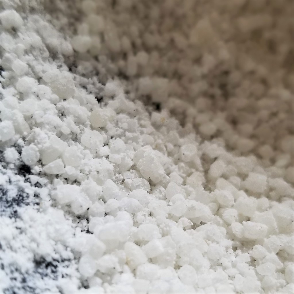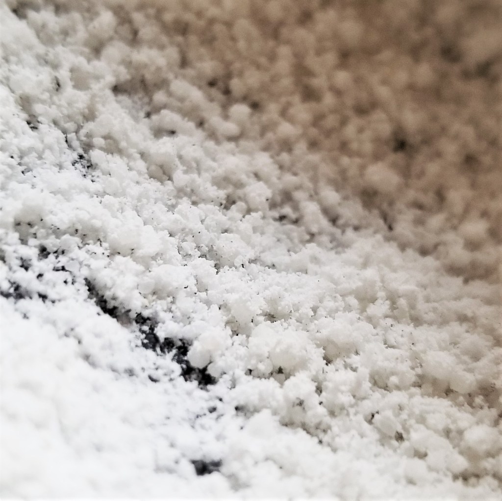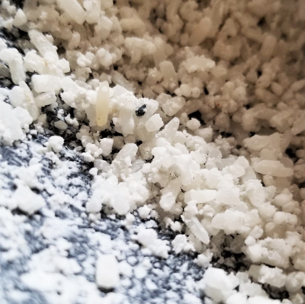 A third batch of rice looks more finely ground, and with even finer black speckles, but still visible: