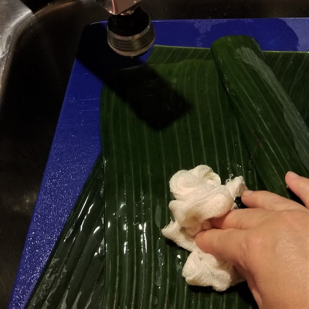 Banana leaves, enough to get 8 pieces, each approximately a 10×10″ (25×25 cm) square
