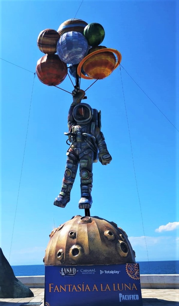 Announcing the proximity of Carnival in Mazatlán is the exhibition of monigotes, giant sculptures that begin to appear along the pier, and other central locations, a few days before the festivities commence.  These monigotes are always inspired by the theme of the Carnival, prompting artists and designers to dream their best creations, ranging from “Victory” over war (1943), and “Once Upon a Time…” catering to little princesses and arctophiles alike (1972), to fantastic creatures “Alebrijes and Dragons” (2017).  The theme for 2021 was “LANAO, Un viaje por el Tiempo” – “The Vessel – a Journey through Time”, but since the event was cancelled due to the pandemic, the organizers decided to keep the theme for 2022, worded as “LANAO – el viaje continúa” – “The Vessel – the Journey Continues.”