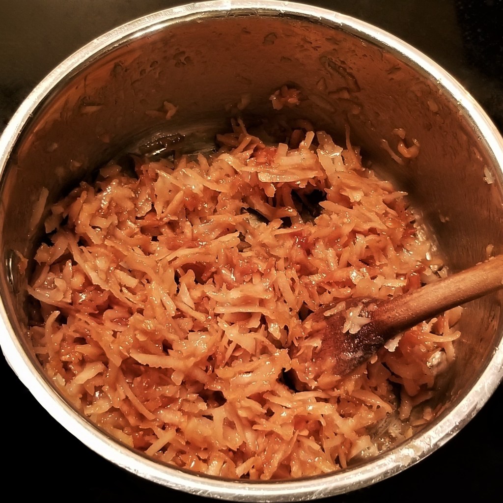 A nice sweet ending to the Puebla style stew from my previous post would be cocadas doradas – golden brown coconut treats, which are traditional sweets from the same state. Although coconuts are not native to Mexico, but were brought after the Spanish conquest, they quickly became endemic to coastal regions, and nowadays there are many ways to cook with them. Curiously, Puebla is an inland central state with relatively cool weather, so coconuts are not cultivated there, but these treats have been around for many years, with the recipe mostly unchanged; people in Puebla still make them commercially or at home, for the sheer pleasure of tasting their “doraditas” – “goldies”.