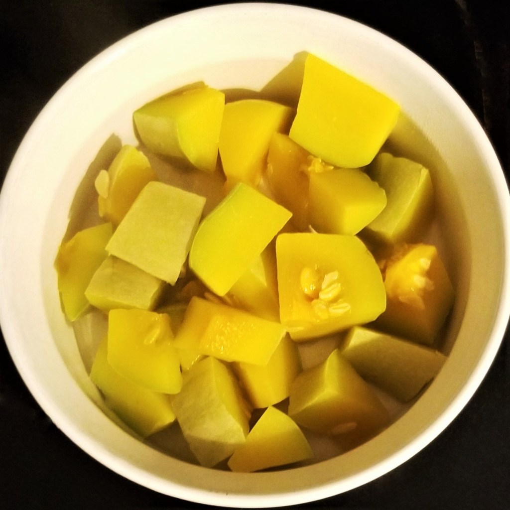 Continue cooking squash (photo below, left), until tender, then transfer to a bowl (photo below, right):