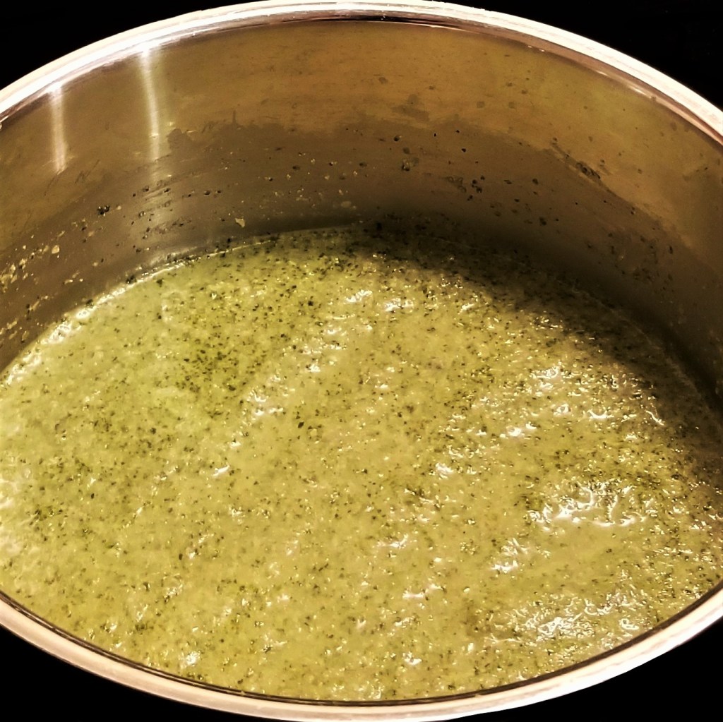 I have several posts regarding pipián; Mexican pipián is defined as any dish composed by cooked meat or vegetables, smothered in a very rich sauce, thickened with ground seeds.  There are many regional pipianes, which may be red, green or even white, from using different chiles, tomatoes, tomatillos, or their absence, and a range of textures and flavours may be obtained from the use of pumpkin seeds, or others, such as almonds, peanuts, and sesame.  For my recipes for Red Pipián (with vegan option), White Pipián (classic Mexico City recipe), Fish Filets in Garlic Scape Pipián (my take to use garlic scape from my garden), and Blushed Pipián (with pork), click on highlighted text.  Pipián verde (green) is very traditional nationwide; my recipe is close to Central Mexico styles, where squash is often paired with this bright green preparation.