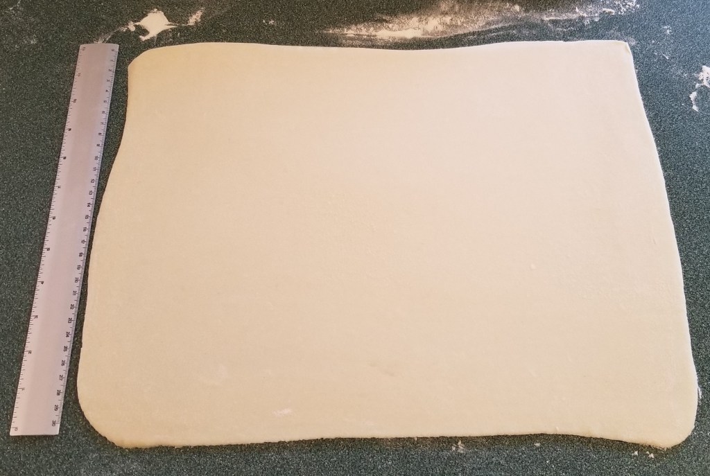 On a well-floured surface, roll pastry into a rectangle, a little larger than 12×16 inches (30×40 cm):