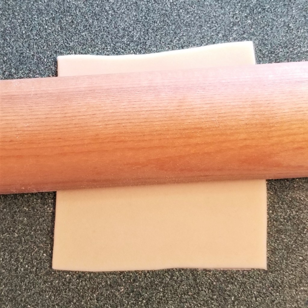 Brush around the edges of the pastry squares with a little water (photo below, left). Roll the remaining pastry squares just slightly, to make them a tad thinner and larger (photo below, right):