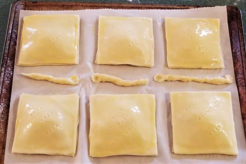 I placed the pastry trimmings on the tray, to avoid waste: