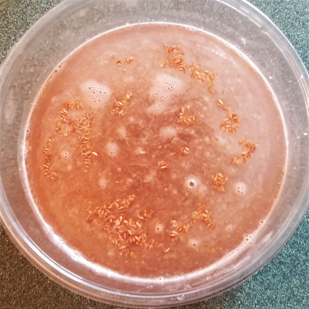 While the wheat is soaking, prepare the topping by mixing cabbage, red onions, hot peppers, citrus juice, and salt, in a non reactive container: