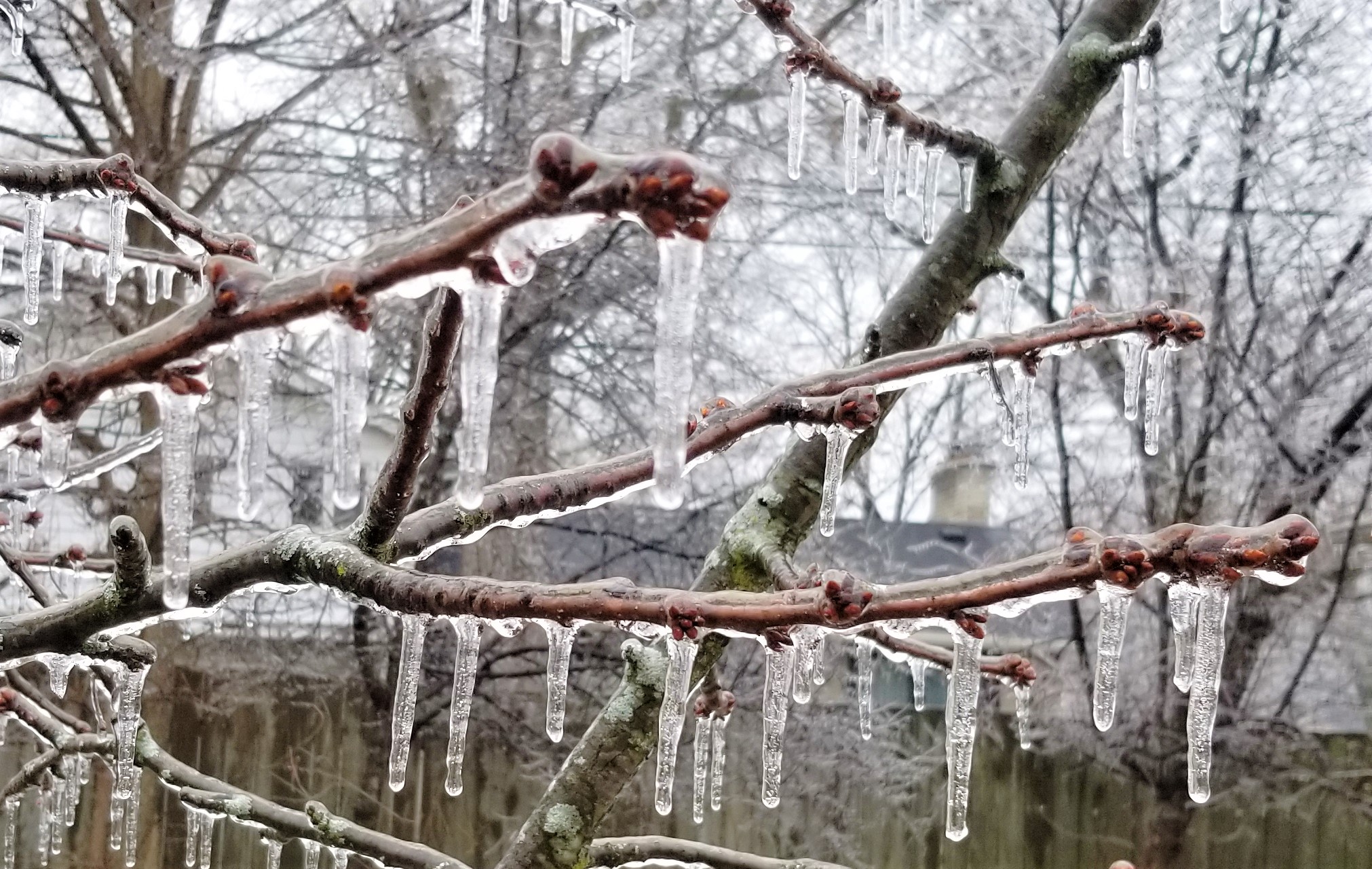 Freezing rain is formed by cold raindrops that freeze upon contacting the ground or any other surfaces, forming a thin layer of ice, as seen aboveĀ on a cherry branch, in a photo from this morning, taken in my garden in Southern Ontario … click on tittle for more