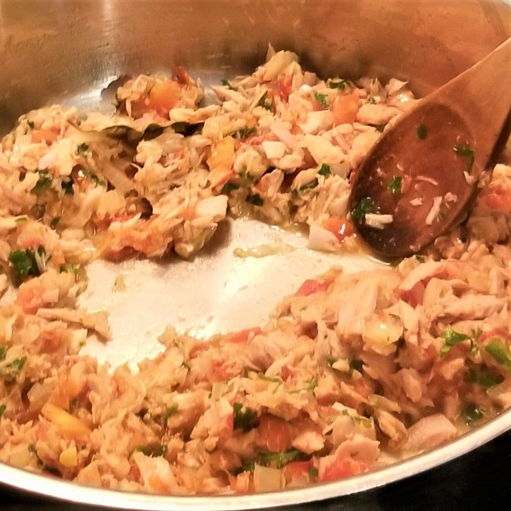 As Easter is arriving soon, this simple and inexpensive fish dish may serve as a refreshing valediction to the Lenten season.  Using tuna fish from canned is the easiest, but any fish meat will work well in this recipe.