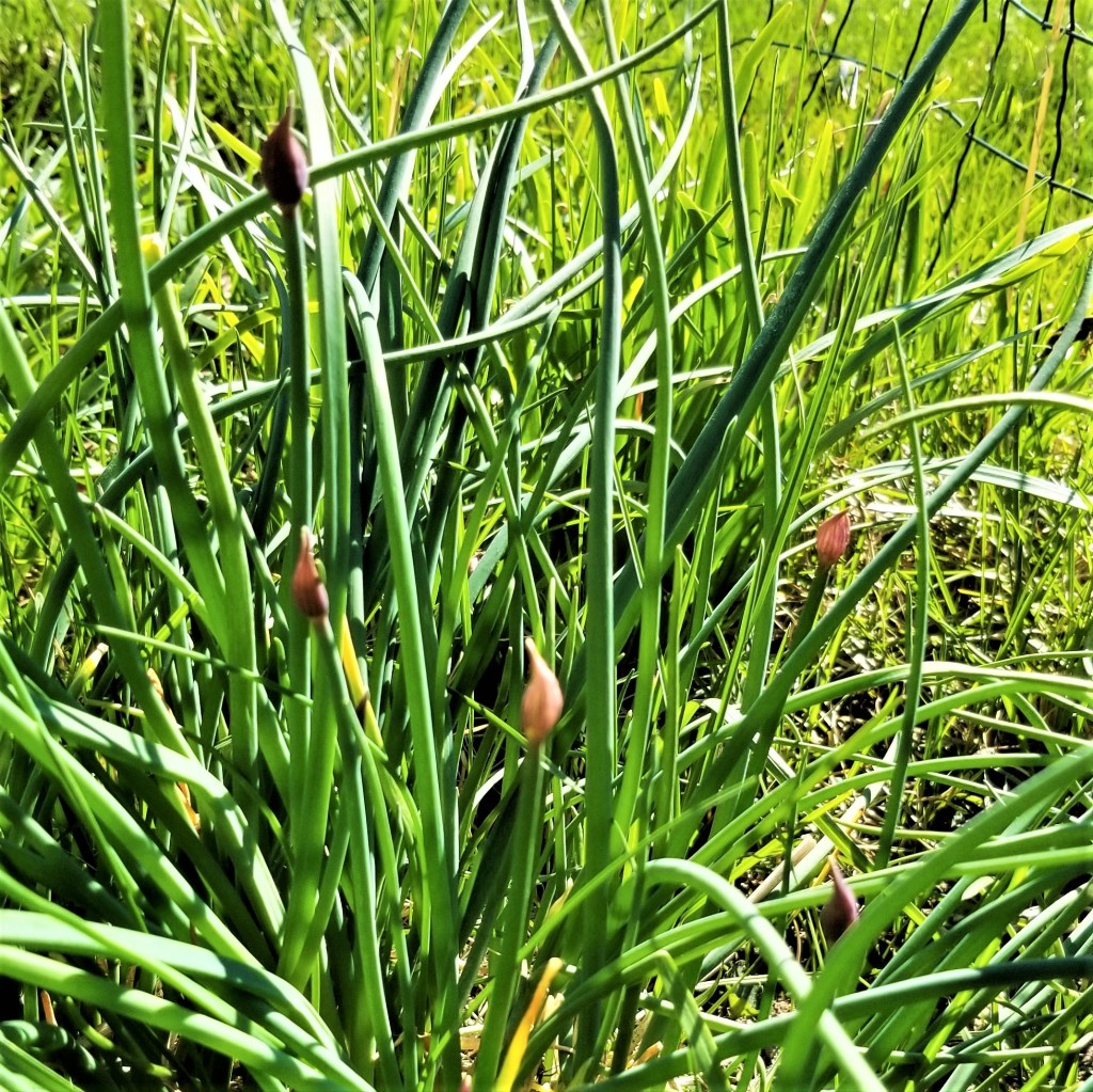 Perennial herbs, flowers and other plants are suffusedly turning the landscape green; some seem to be developing faster than in previous years. The onion chives are tall and have little purple buds here and there: