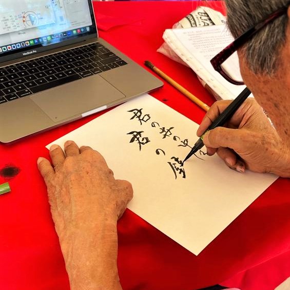And special stations, were people of all ages could learn new pastimes and skills, for example, Shodo (Japanese calligraphy, photo below, left). My sister was demonstrating, and helping people learn, how to hold and use Hashi (chopsticks, photo below, right):
