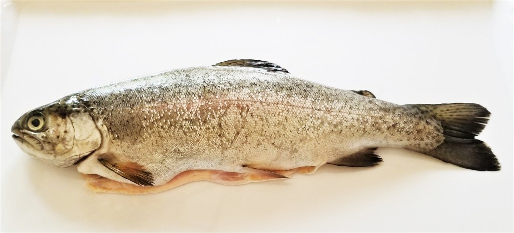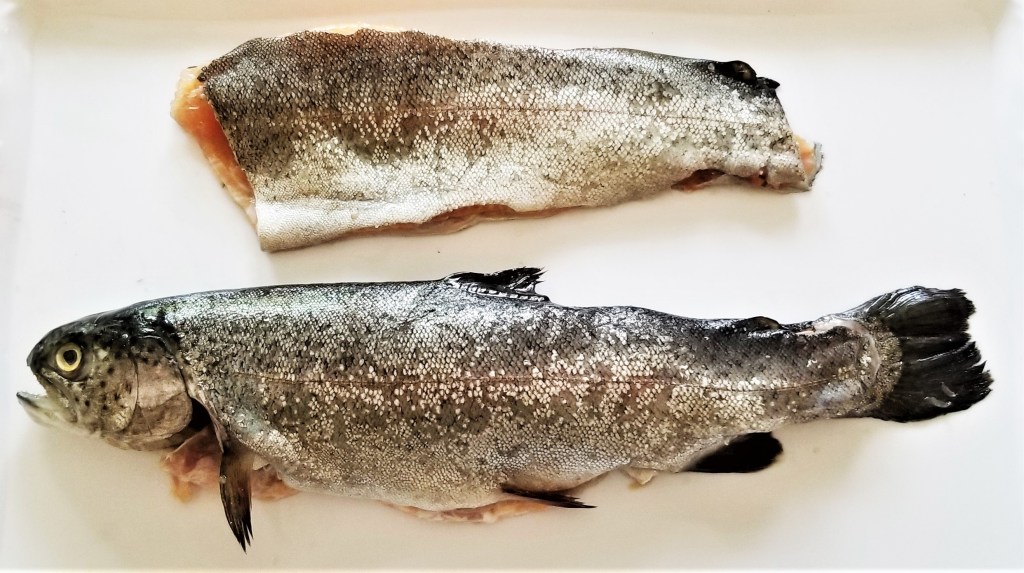 For my rendition, I started with medium-sized fresh trout, already de-scaled and gutted: